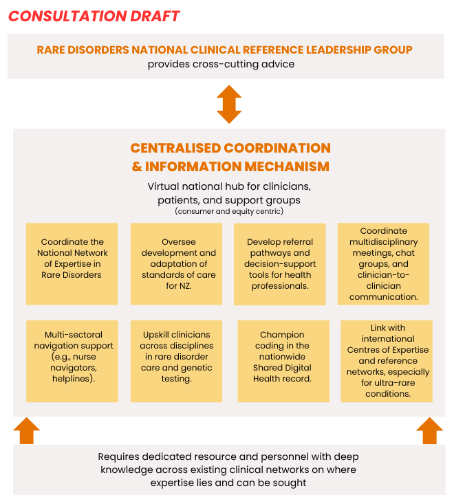 There are many different ways a leadership and coordination mechanism could look - in the short and long term, in the New Zealand context. Central to the establishment of any mechanism for rare disorders is adequate stakeholder consultation.